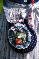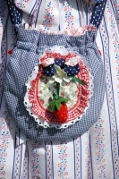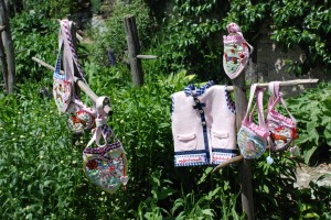 Passend zu unseren Westchen bieten wir Täschchen in Herzform bestickt und appliziert an. Wollwalk und Baumwolle.