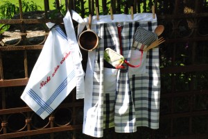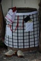 Weite und lange Schürzen mit angeknöpften Topflappen.